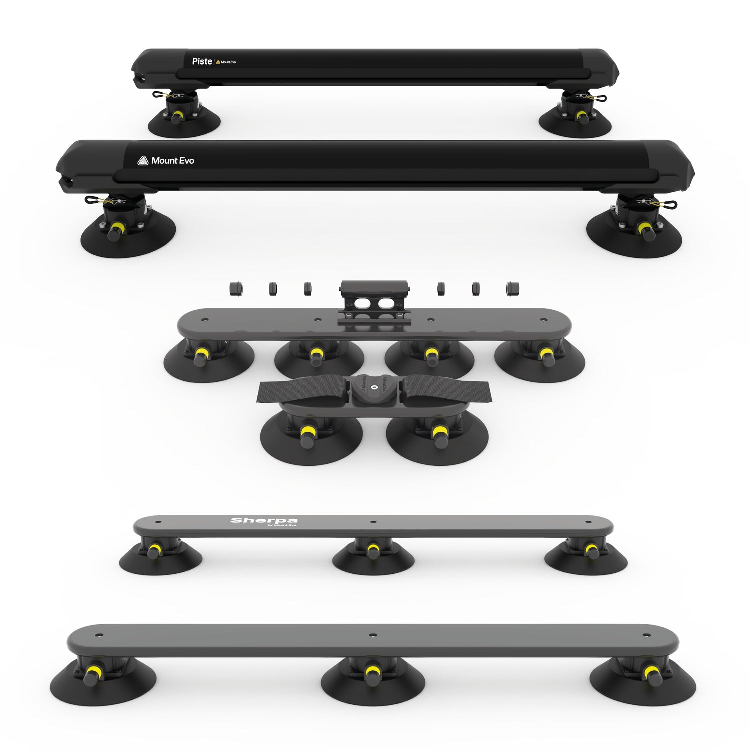 Bundle your sports racks and save money. Our bundles include vacuum cups, and two modular bases. One for each rack in the bundle. This is the most cost-effective method of carrying the sports you love on any car.