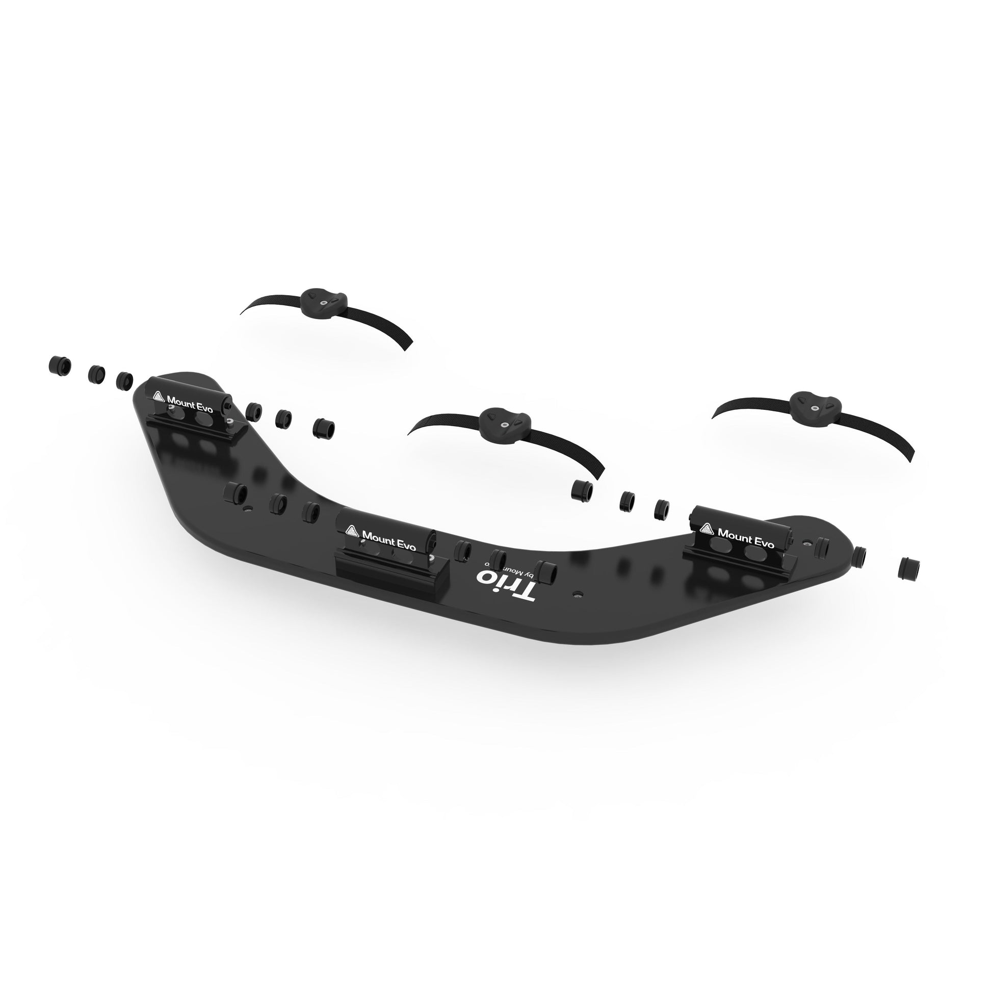 Trio Modular Base includes everything you need to mount three bikes except vacuum cups. You must already own one or more Mount Evo vacuum cups to buy a modular base.