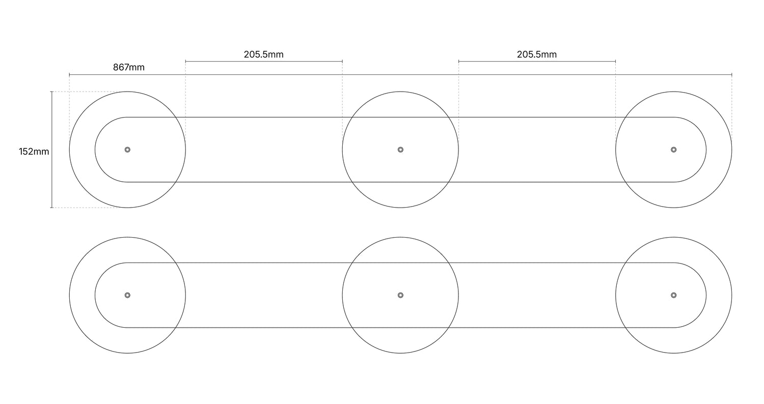 W867mm x D152mm x H70mm (x2)